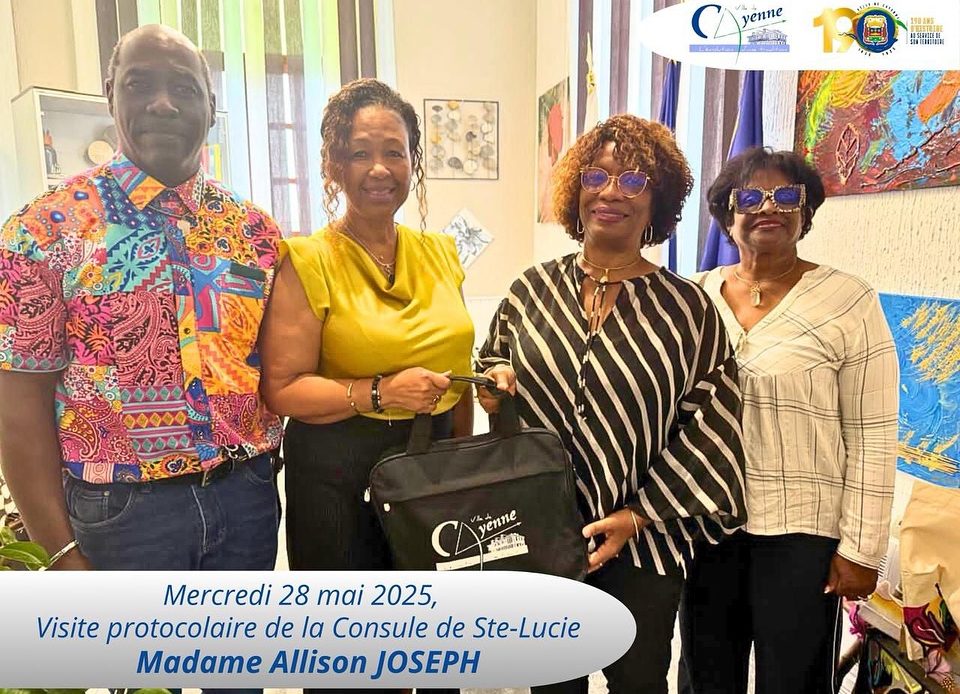 12 juin 2025Vie municipale RÉCEPTION PROTOCOLAIRE d’Allison JOSEPH, Consule de Sainte-Lucie Dans la poursuite des démarches de facilitation des échanges entre la Guyane et Sainte-Lucie, Madame