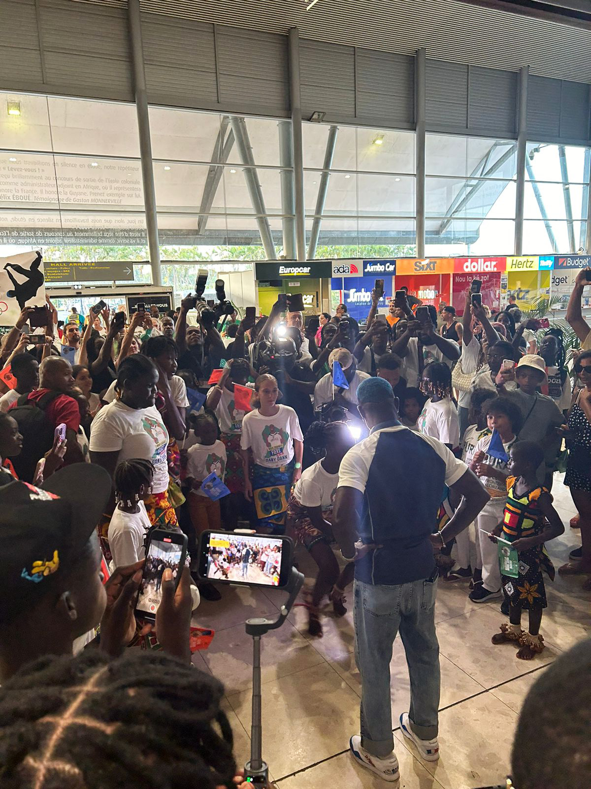 Fabiola SAINT HILAIRE Maire Adjointe Déléguée à l’Education a représenté Sandra TROCHIMARA Maire de Cayenne pour ces instants uniques, exceptionnels qui ont enflammé l’aéroport Félix EBOUE.