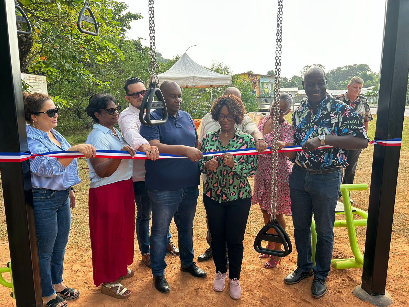 Sandra TROCHIMARA Maire de Cayenne accompagnée d’élus Mesdames Hélène PAUL, Dominique BERTONI, Laura HIDAIR, Awatef ARGOUBI et Messieurs Christian FAUBERT, Jean-Marc AMBROISE, Claude MORTIN et Erick SAHA ont inauguré ce premier espace composé de différents agrès faciles d’accès et d’utilisation disponibles 24h/24h.