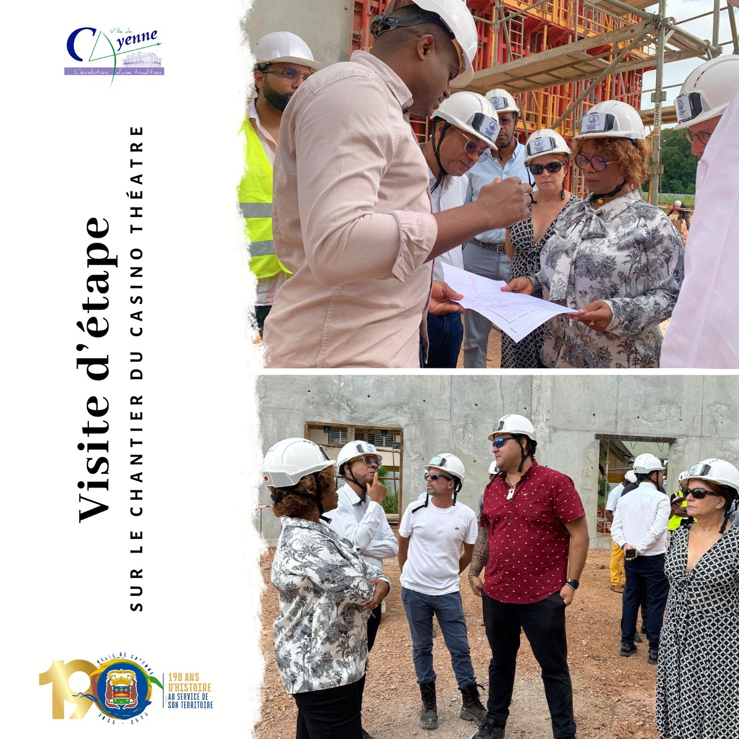 Cinq mois après la pose de la première pierre, une délégation d’élus de la Ville de Cayenne a visité le site le 18 mars. Conduite par Madame le Maire Sandra TROCHIMARA, elle réunissait Jean-Marc AMBROISE, Dominique BERTONI, Laurent LIE KON WAH, Roland LOE-MIE, ainsi que Henri ERNOULT et Gilles DEFERT du groupe COGIT, Florent BRUN de la SAS CAYSINO, Fabrice KOUAM et des représentants d’ARTIBAT.Le projet, avec un investissement de plus de 25 millions d’euros, comprend une salle polyvalente de 13 mètres de haut et promet la création de plusieurs centaines d’emplois. Il accueillera spectacles, congrès et conférences, contribuant à l’attractivité de Montabo-Chatenay, de Cayenne et de toute la Guyane.