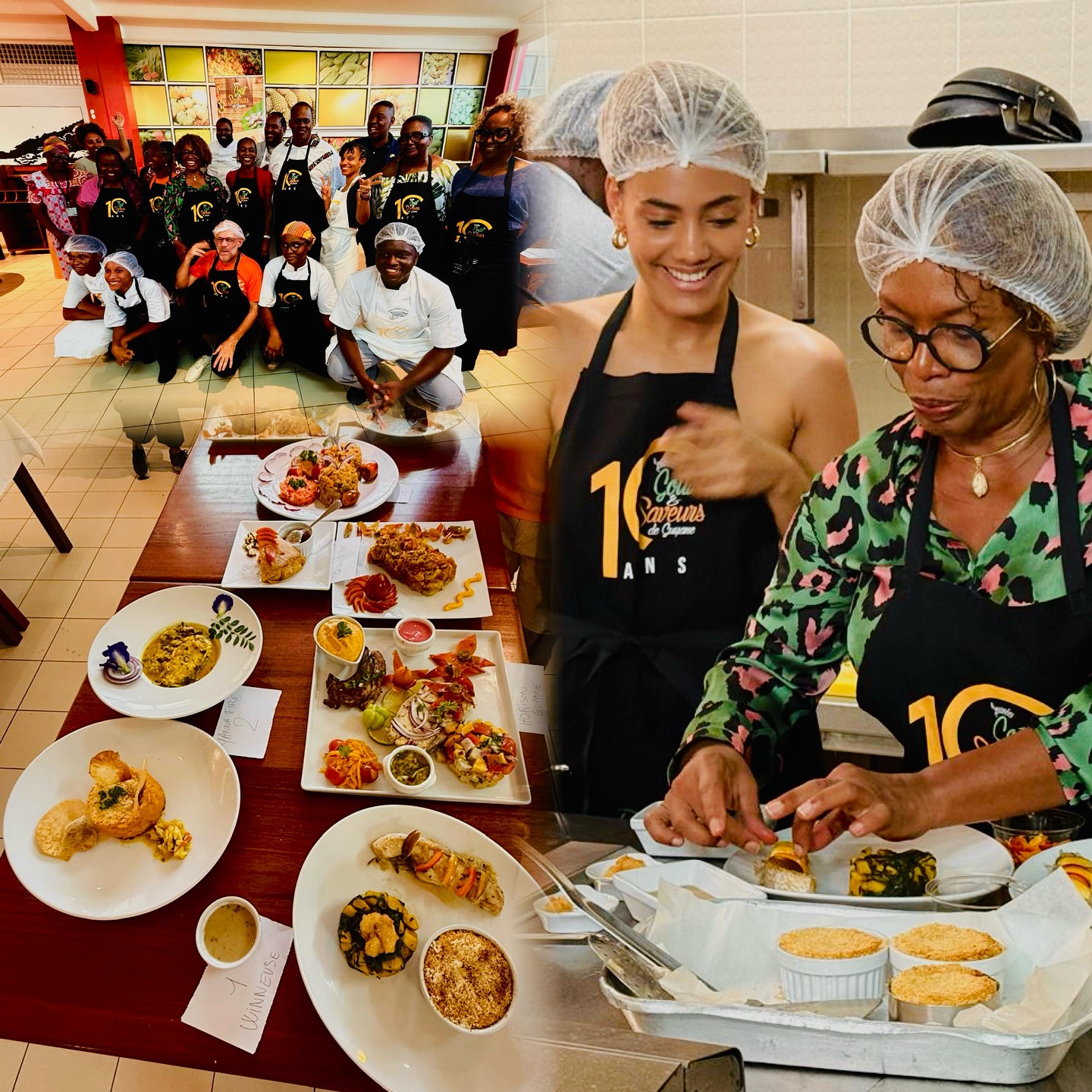 Samedi 12 avril, la Ville de Cayenne a accueilli la 10e édition des journées « Goût et Saveurs », organisée par le pôle culturel de la CTG.– Cet événement qui s’est déroulé au Lycée Melchior Garré a mis en lumière le patrimoine culinaire guyanais à travers un concours de « célébrités » autour de la cuisine locale. Sous la direction d’Eric MAQUIGNY, chef de travaux du restaurant d’application, les ateliers ont eu lieu dans les cuisines du lycée, avec la participation enthousiaste des élèves. Les ingrédients fournis par les agriculteurs de Cacao ont inspiré des recettes originales sous la supervision du chef Dorys MIRTA, représentant des Toques guyanaises.