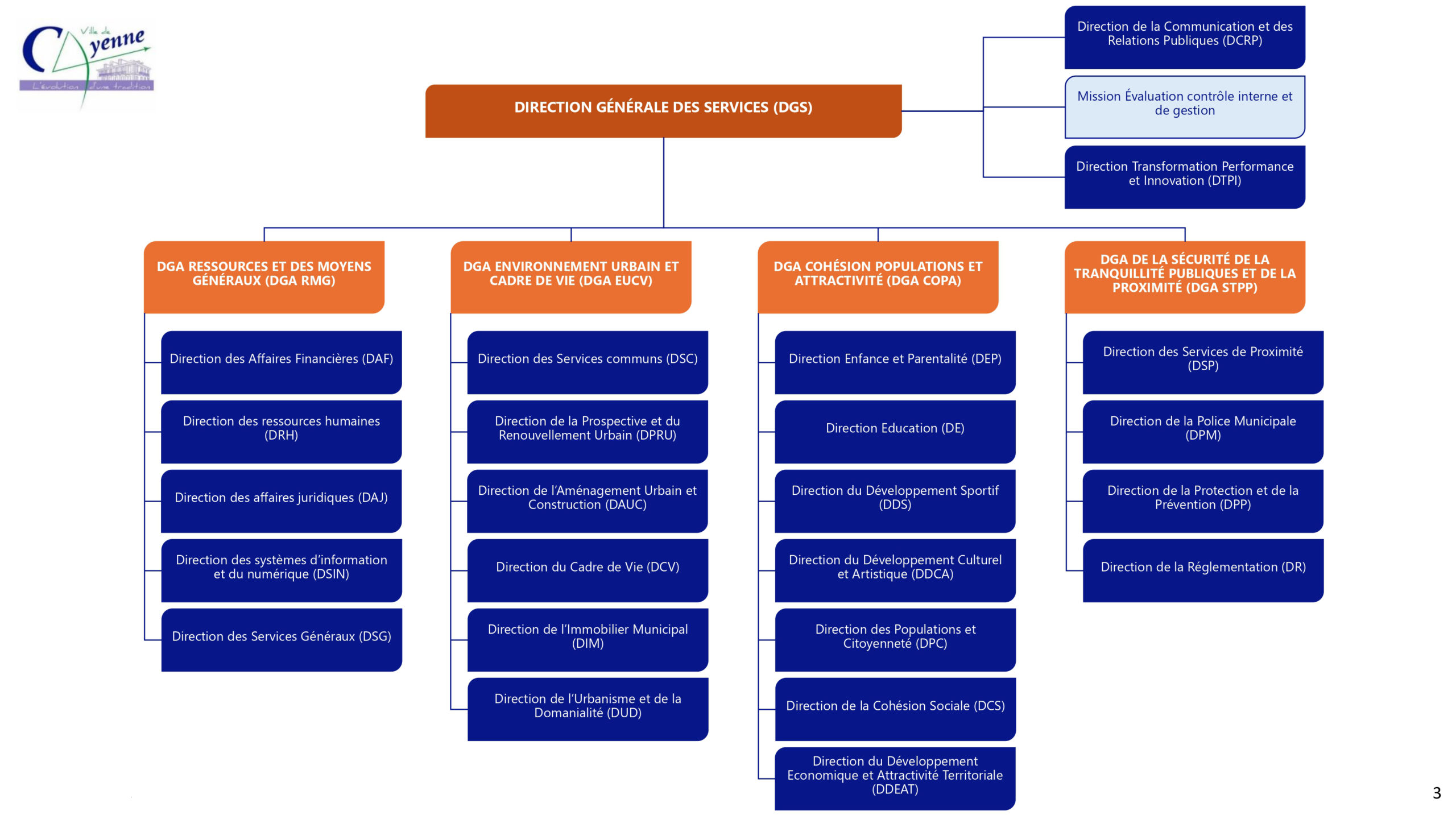 Découvrez l’organigramme de la Ville de Cayenne, présentant la structuration des services et l’organisation des équipes au service des citoyens.