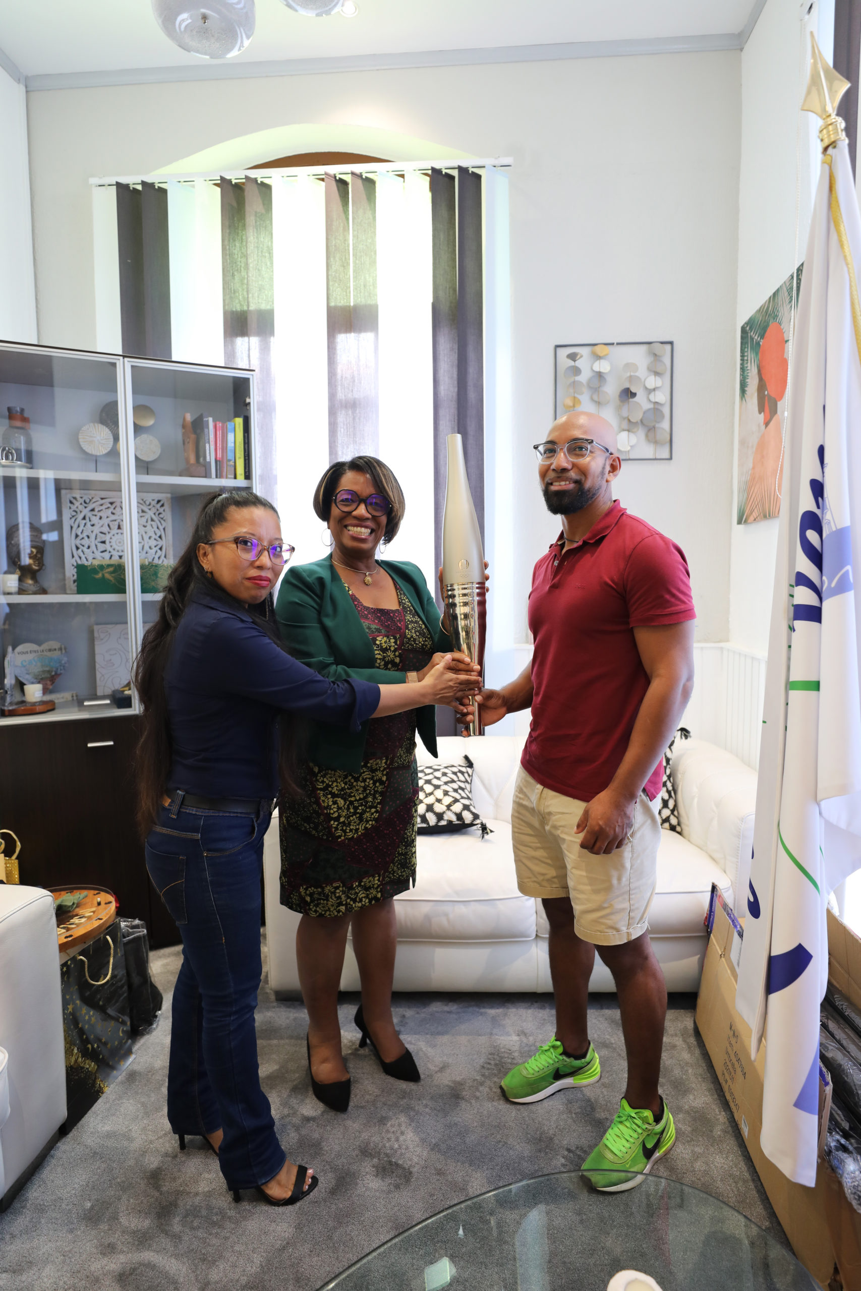 Madame Sandra TROCHIMARA, maire de la ville de Cayenne, accompagnée de Madame Ruth CEPRIKA, Conseillère Municipale, déléguée à la vie associative ont eu le privilège de recevoir Monsieur Nicolas CHAUMIER, premier relayeur guyanais du relais de la flamme olympique sur notre territoire.