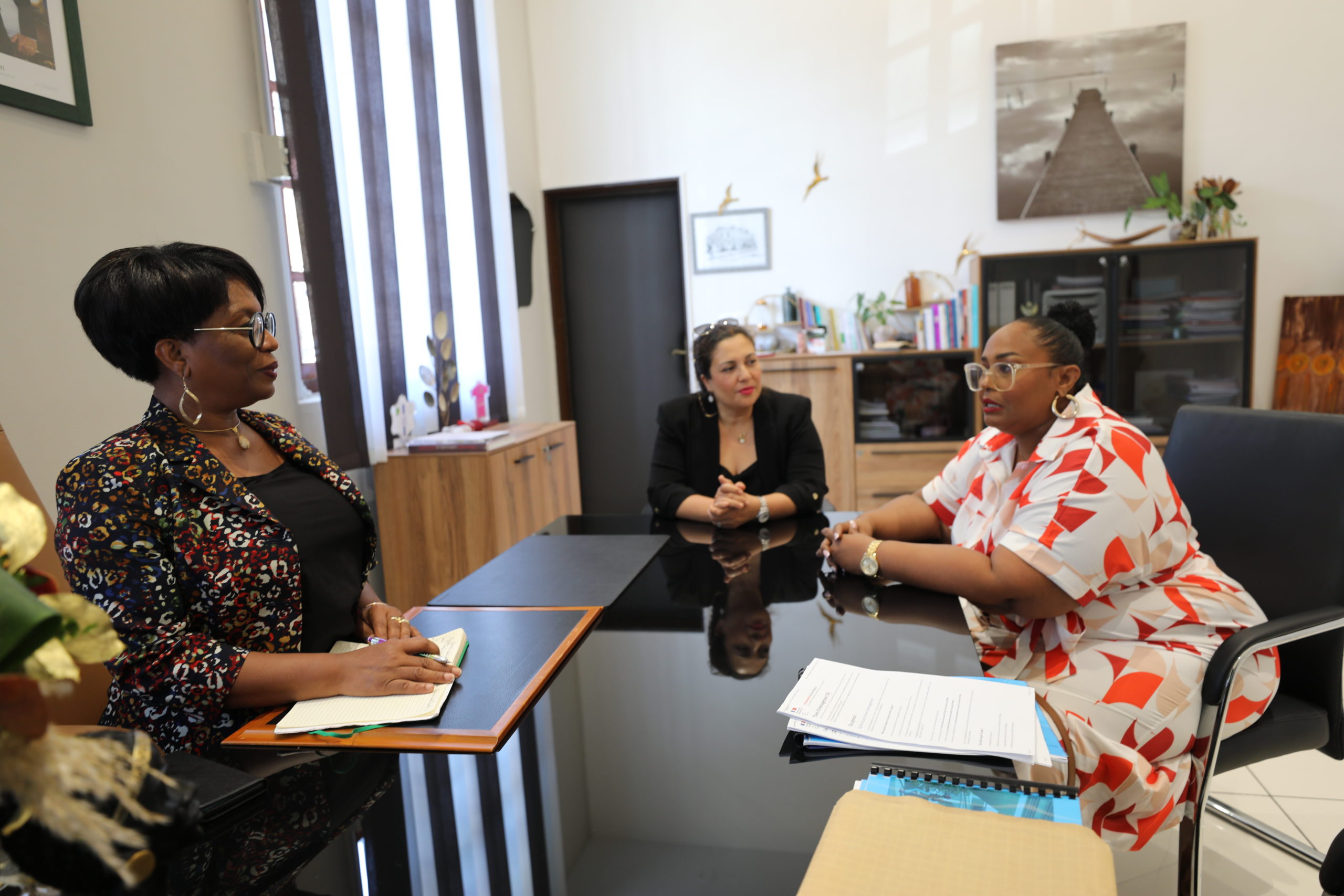 Mardi 12 septembre 2023, le 1er magistrat de la Ville Sandra TROCHIMARA accompagnée de Madame Awatef ARGOUBI Conseillère municipale déléguée à la santé, rencontraient Madame BEHARY-LAUL-SIRDER, Directrice adjointe du Groupe RAINBOW SANTÉ, pour faire un point sur l’avancement des travaux relatifs à la construction de la clinique Canopée au sein de la ZAC Hibiscus. En outre, un point a été fait sur les futurs recrutements, et le partenariat qui sera mis en place entre la Ville de Cayenne et le groupe Rainbow Santé pour identifier les compétences locales permettant de répondre aux attentes du groupe.
